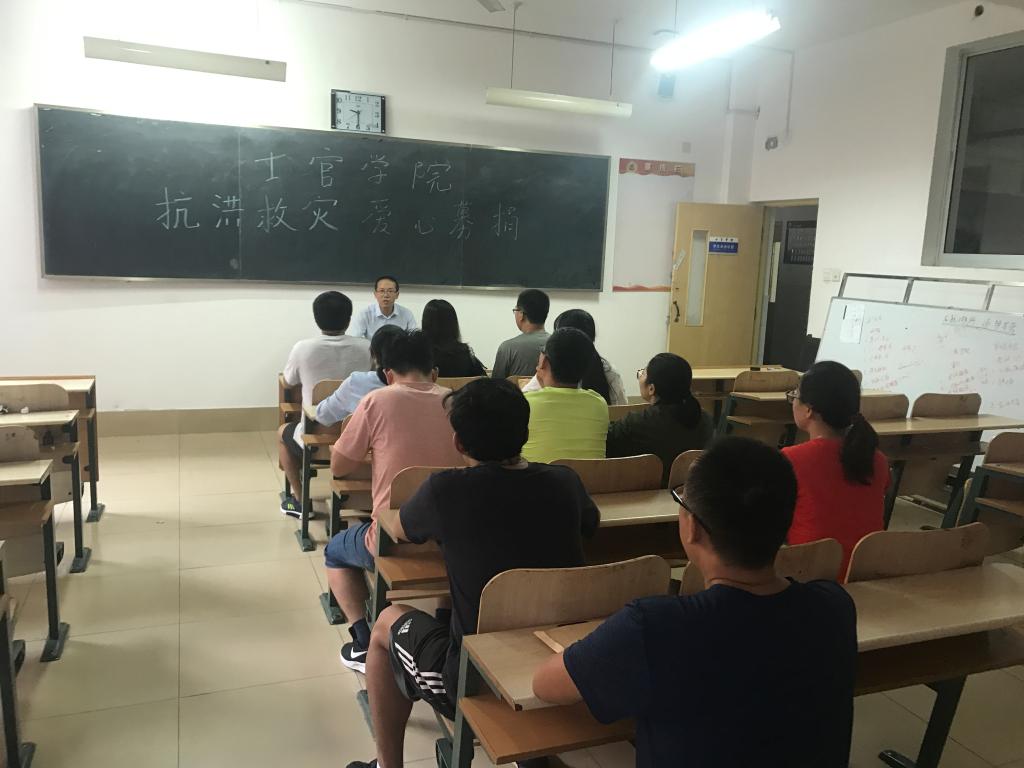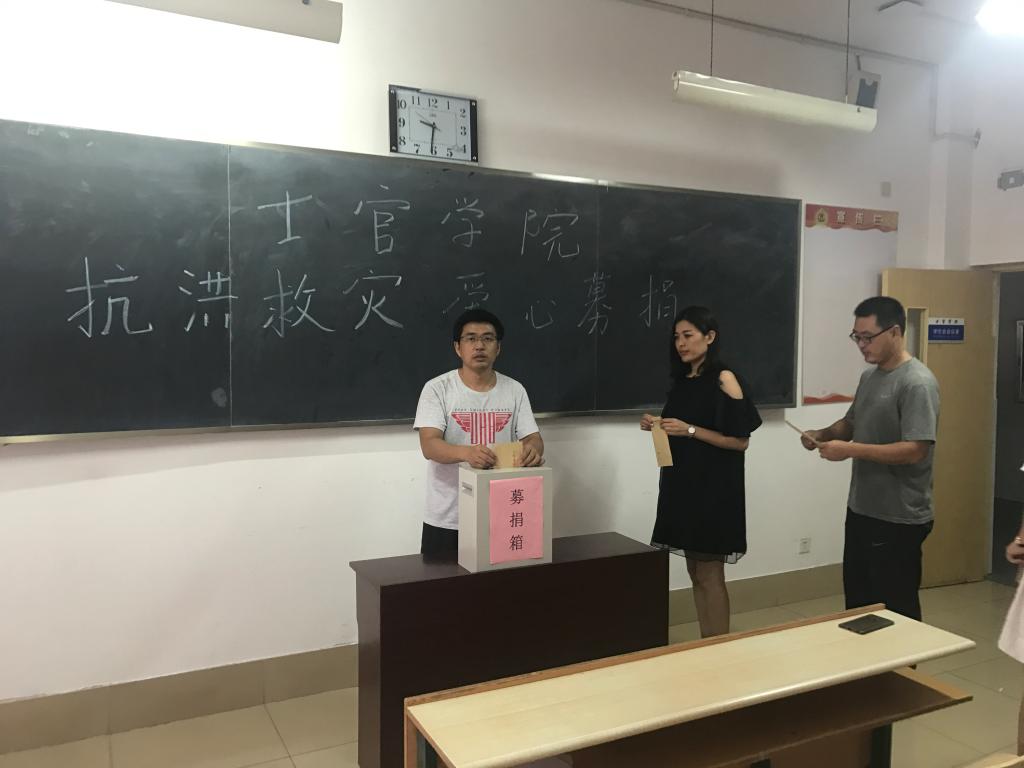 洪灾无情人有情,大灾面前有大爱!8月23日上午,士官学院组织全体教师开展“抗洪救灾、爱心募捐”活动。每位教师都慷慨解囊,为受灾群众伸出援助之手,奉献爱心,帮助灾区恢复生产,重建家园。这些善款将由学校统一捐给慈善机构,用于投入灾后重建工作,帮助灾民战胜困难、恢复生产,为重建家园尽一份力。