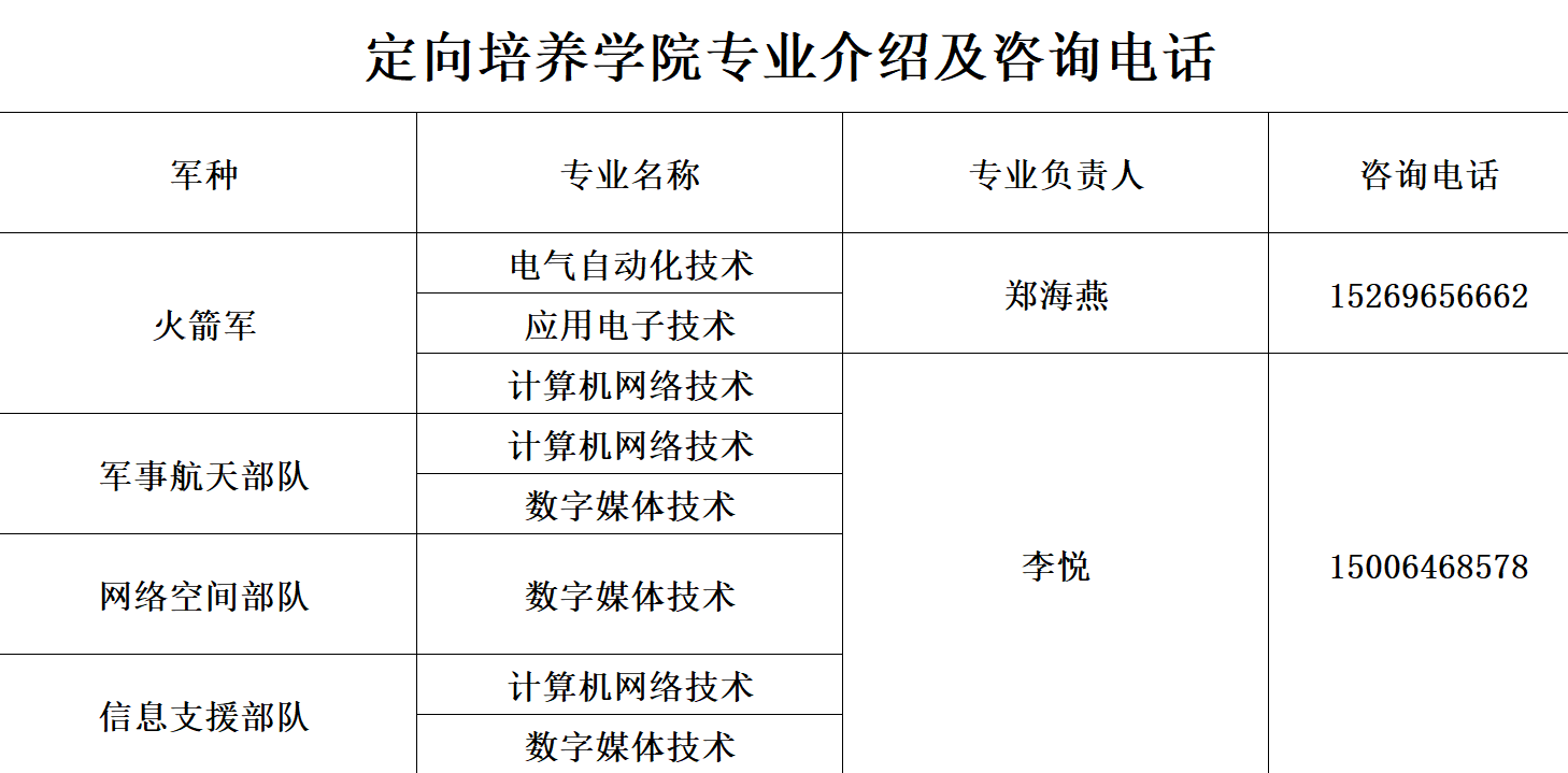 [详情]定向培养学院专业介绍及咨询电话