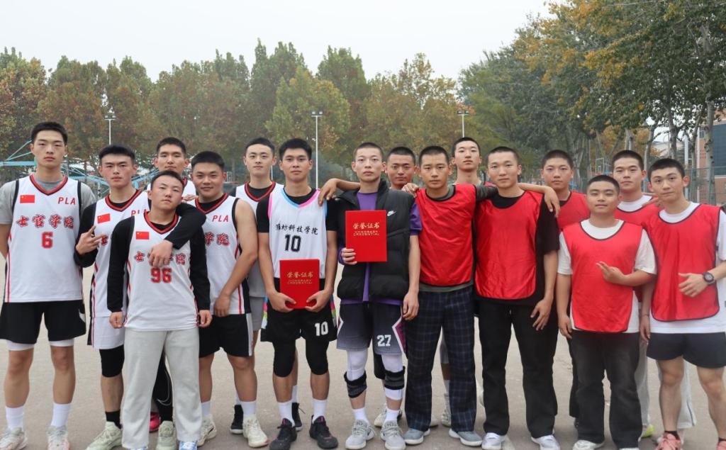 11月7日,举行了篮球决赛,当裁判员终场哨音响起,全场瞬间沸腾。翟元元导员带的队伍斩获冠军,陈鹏程导员带的队伍和孙伟导员带的队伍分获亚军和季军,为期12天的篮球比赛也圆满结束,最后为获奖团队颁发证书,所有参赛人员进行合影留念。