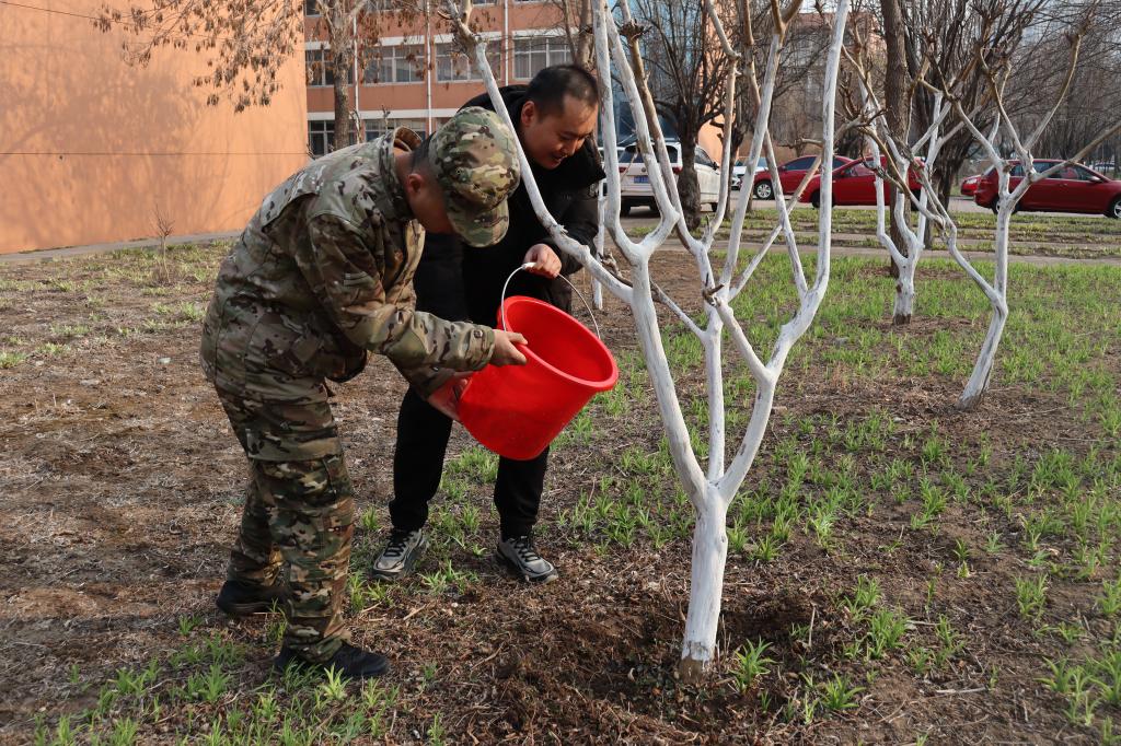 我院辅导员翟元元、孙伟、陈鹏程与学员代表分工协作、规范有序,共同栽下新苗。辅导员们与学员亲切交流,勉励大家锤炼作风、牢记使命,将绿色理念融入日常。在辅导员们的带动下,现场氛围热烈,为校园添彩,也让强军初心与绿色理念深度融合。