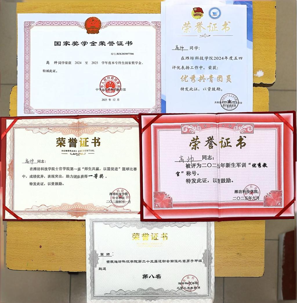 入学以来,高帅始终秉持积极乐观的人生态度,为人坦率正直,待人真诚友善,主动团结身边同学、热心帮扶他人,在学习上脚踏实地、刻苦钻研,在工作中锐意进取、勇于担当。凭借突出的综合表现,他先后荣获2024-2025年度国家奖学金,优秀共青团员等多项荣誉称号,用实际行动诠释了新时代定向培养学子的青春风采。